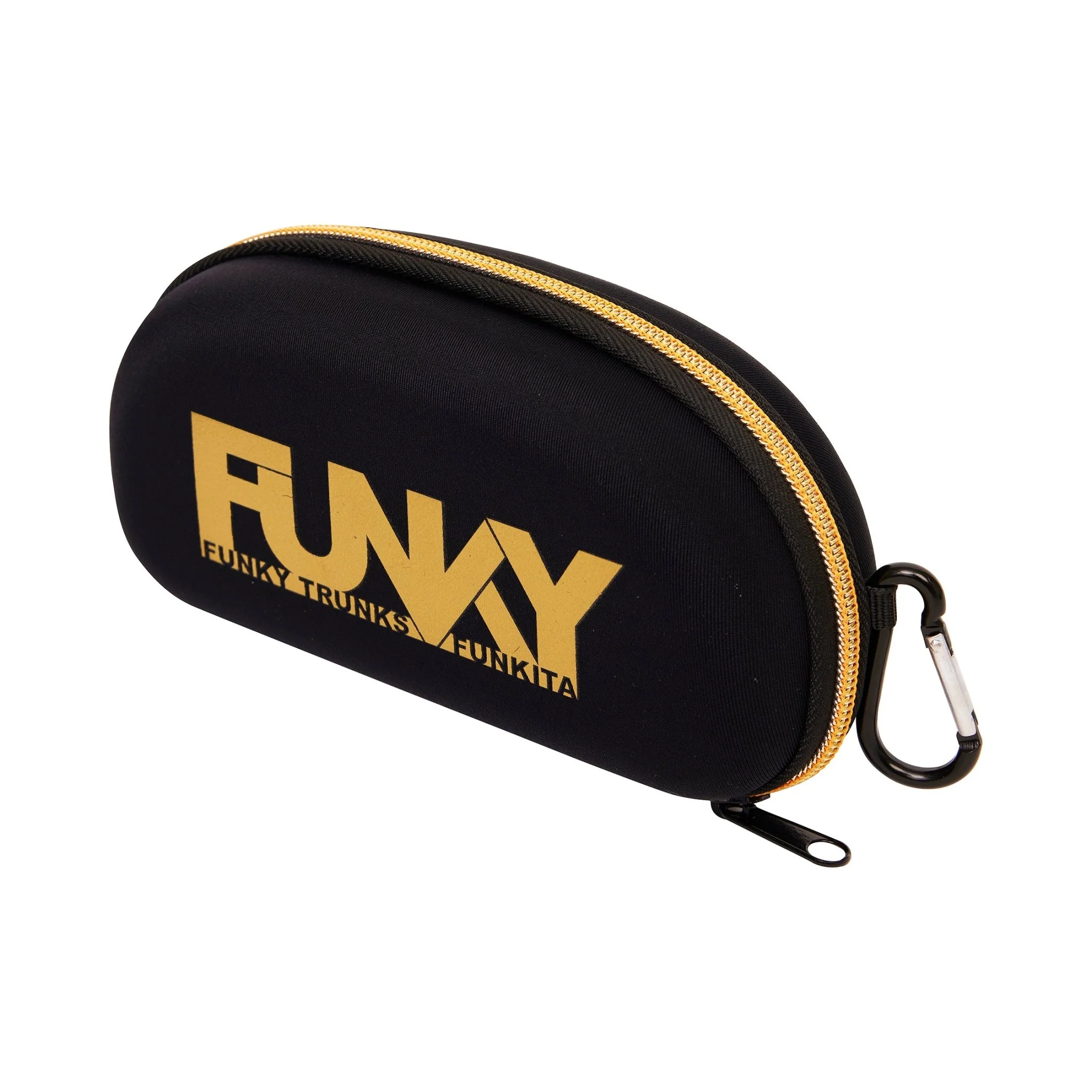 The Funky hard shell case from Funky Trunks & Funkita is designed to protect goggles with a carabiner to clip onto a backpack or mesh gear bag.